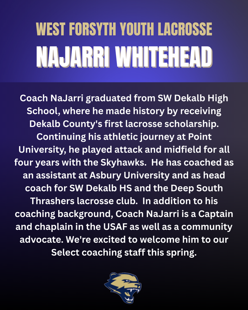 We expect the team members of the West Forsyth Select program to make this team the priority during the season. We encourage multi-sport athletes and club teams, however during the Select season, priority will be given to our select teams’ practices, games and tournaments. We understand Middle School Winter sports may overlap early in the season and will accommodate those activities. We expect that players will not play for another lacrosse team during the spring season.